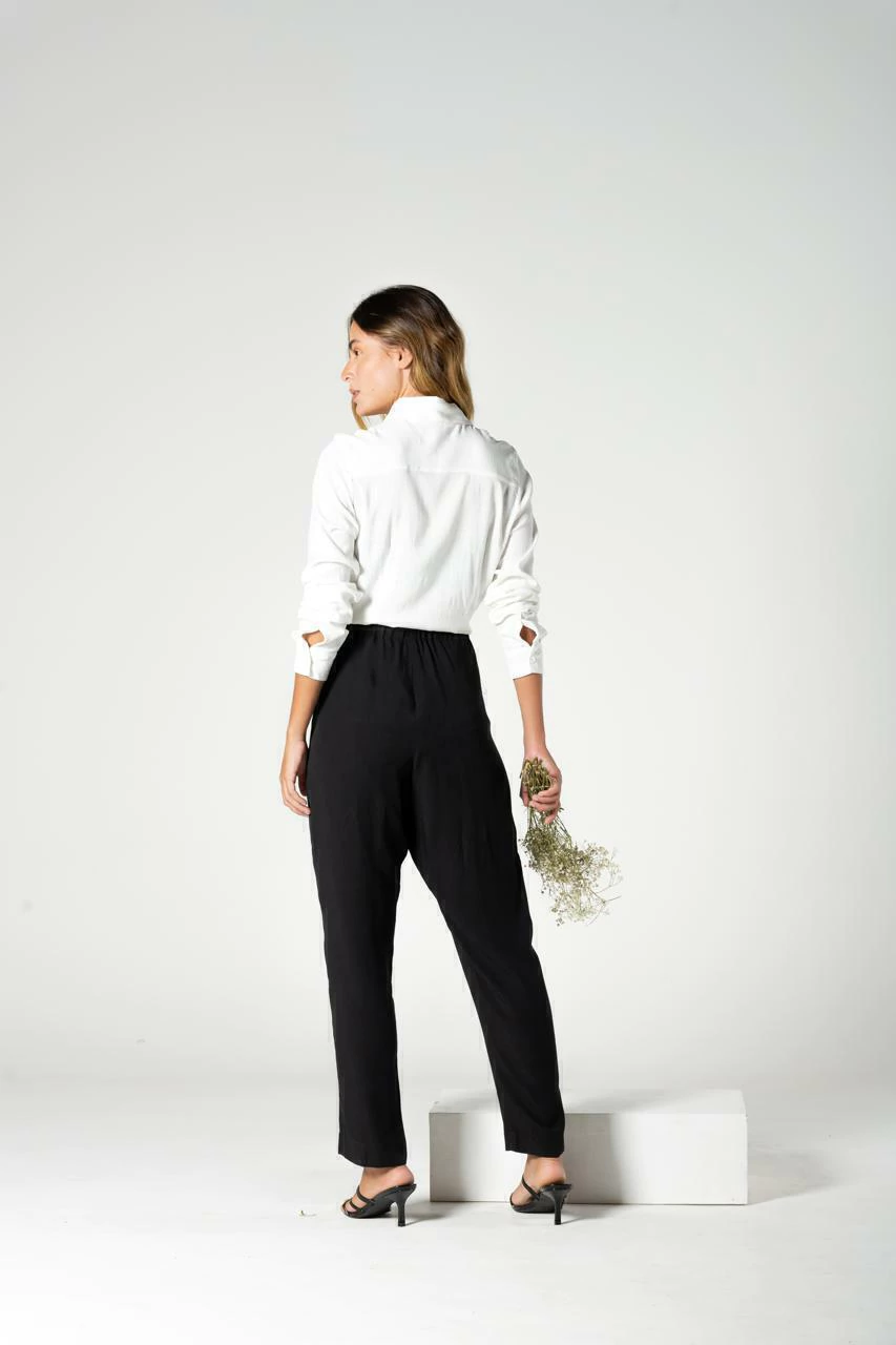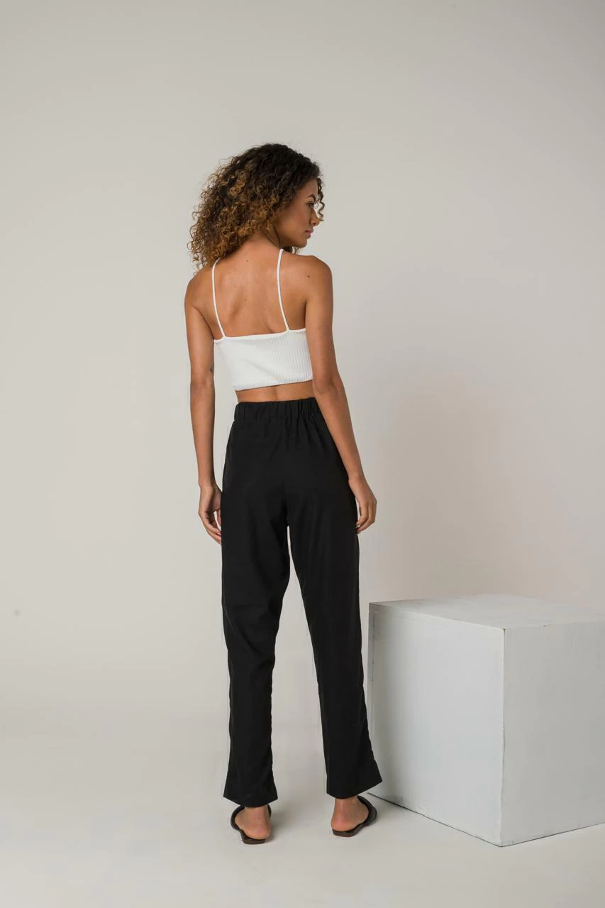 A calça reta da Tripp, nosso modelo essencial, com pernas mais ajustadas e mais curta, terminando no osso do tornozelo. A cintura com elástico na parte de trás e reta na parte da frente. Uma calça confortável e linda. Com traços planejados e modelagem tradicional, uma calça em alfaiataria indispensável.